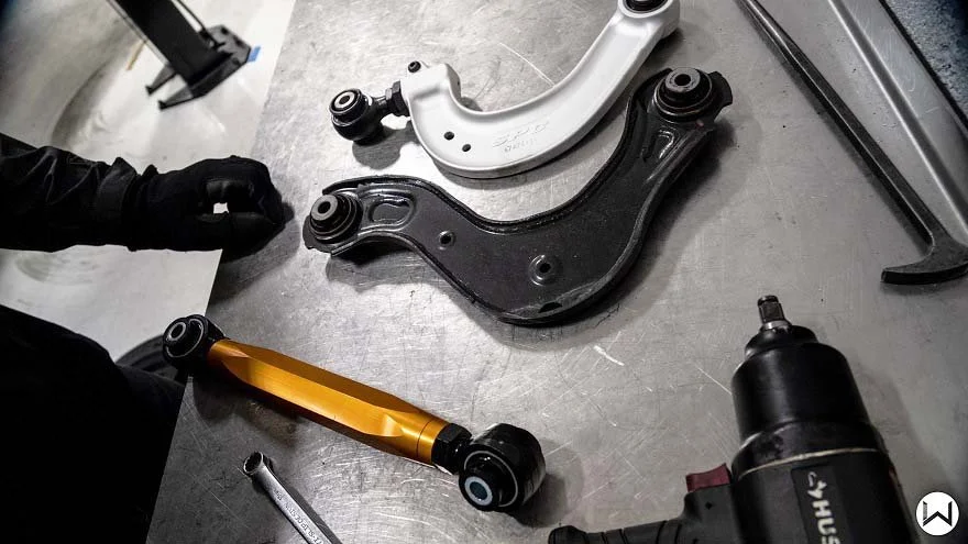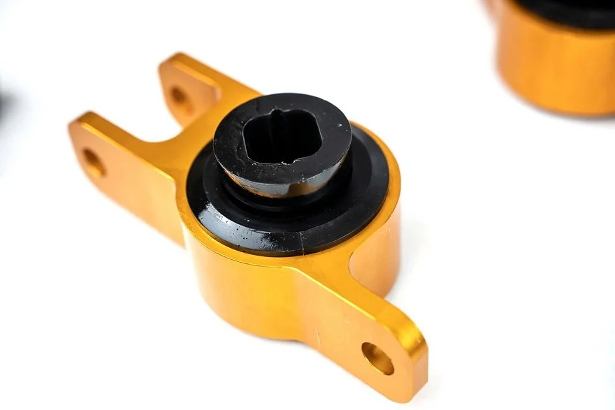 If there were no bushing and everything was hard mounted you would have a super loud and harsh ride. Like everything else, this too can be upgraded in various ways. Mostly the material used plays the biggest role. It can be rubber, polyurethane, or some hybrid material in between. The rubber and poly can have various durometers reflecting how soft or stiff the bushing is. Almost everything you see coming out of OEM is rubber while performance units are usually poly. Again a stiffer component offers a more performance oriented ride that improves handling but at the cost of comfort.