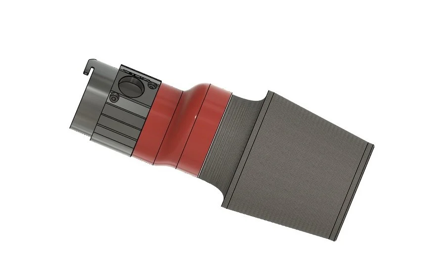 This is what the design looks like installed with some prototype 3D printed parts and a filter.